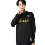 アスレタのサッカーウェア、プラティクスシャツ長袖 HM-011は、70BK/58GDのカラー展開で、一般向けにデザインされています。中学校や高校、アダルト向けの製品です。