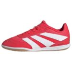 アディダスのジュニア向けフットサルシューズ、プレデタークラブサラIN。サイズは17~24.5cm、カラーはルシッドレッド/フットウェアホワイト/コアブラック。最適なフィット感とグリップを提供します。