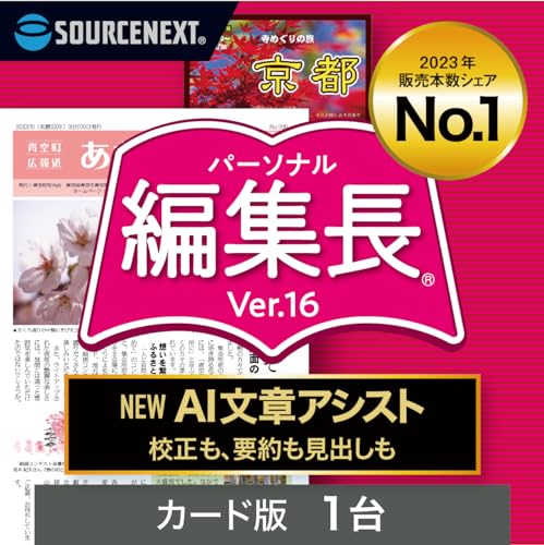 ソースネクストの「パーソナル編集長 Ver.16」は、新聞、冊子、チラシ作成に特化したWindows対応ソフトです。直感的な操作で簡単にデザイン可能。多彩なテンプレートも用意されています。