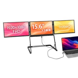 THANKO 映像出力がないUSBでも4画面にできる拡張モニター TRMS25CBK 15.6インチ 3画面 4画面 フルHD FHD トリプルモニター トリプルディスプレイ 画面拡張 薄型 コンパクト 折りたたみ可 Type-C1本接続 IPS ノングレア Mac/Windows対応