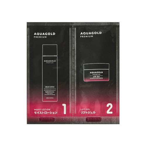 phiten(ファイテン)のアクアゴールド プレミアム トライアルセットは、モイストローション2mlとリフトジェル2gの2点セットです。エイジングケアに最適で、お試し用スキンケアアイテムとしておすすめです。