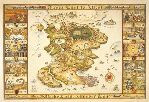 やのまんの1000ピースジグソーパズル、コンパクトピース。わちふぃーるどの地図デザイン(26x38cm)。13-19ピース請求ハガキ、のり付き、へら付き、サービスカード、トリセツ付き。