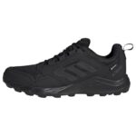 アディダスのトレイルランニングシューズ、テレックス トレースロッカー 2 GORE-TEX。防水性に優れた快適な履き心地で、アウトドアに最適。サイズ27.5 cm、カラーはコアブラック/セミインパクトオレンジ。