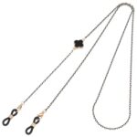 Loocaのメガネチェーンは、シンプルな花型チャーム付きのストラップです。ズレ落ち防止に優れ、ラウンドタイプのブラックでスタイリッシュなデザインです。