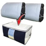 イニコライフのふとん収納袋は、羽毛布団2枚用の大容量ケースです。通気性の良い厚手不織布製で、活性炭シート入り。軽圧縮が可能で、持ち手や透明窓、大きく開くファスナーが便利。使わない時は小さく畳めます。