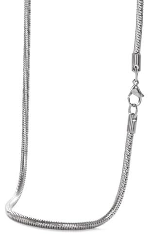 SEIYA INTERNATIONALのステンレス製スネークチェーンネックレス。長さ60cm、幅3.2mmのシルバー仕上げで、耐久性に優れ、シンプルでスタイリッシュなデザインが特徴です。