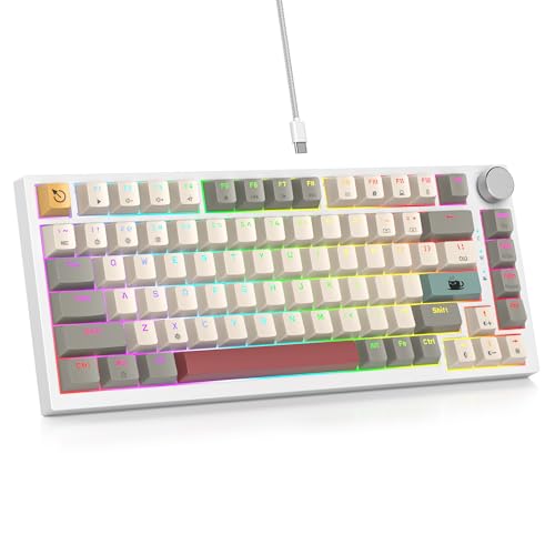 Guffercty 75% レトロキーボードは、カスタムガスケットマウント、ホットスワップ対応のメカニカルゲーミングキーボードです。RGBライト付きでMacとWindows両対応。
