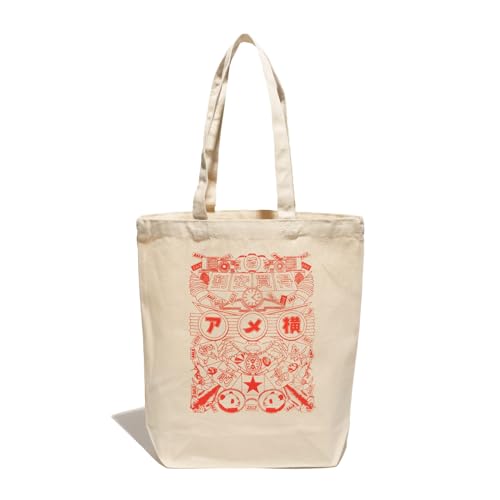 アメ横オフィシャルグッズのトートバッグは、シンプルで使いやすいデザインが特徴。耐久性のある素材を使用し、日常使いやお買い物に最適。アメ横の魅力を持ち歩ける一品です。