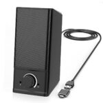 LENRUE A4は、デスクトップやノートパソコン用の5Wスピーカー。USBで電源とオーディオを供給し、プラグアンドプレイ対応。シンプルなデザインのナチュラルブラック。