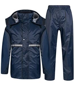 [Fosys] レインウェア 上下セット レインスーツ レインコート メンズ レディース 防水 撥水 アウトドア 自転車 通勤 通学 (M, ネイビー)
