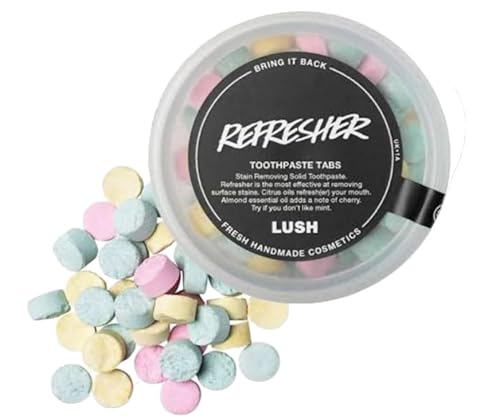LUSH ラッシュ リフレッシャーは、フルーティなライム、オレンジ、レモンのフレーバーを持つ歯磨き用タブレットです。50g入りで、セルフホワイトニングや口臭対策、マウスウォッシュ効果があります。
