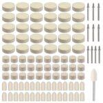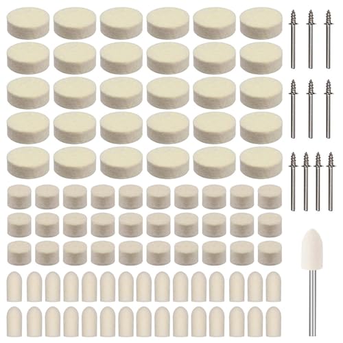 EsiFareのウールバフミニルーター用ビットは、研磨や鏡面仕上げに最適。100個入りで、金属やガラスの仕上げ作業に便利。電動ドリルやポリッシャーで使用可能。