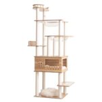 大型猫や多頭飼いに最適な185cmの木製キャットタワー。省スペース設計でおしゃれな宇宙船型。爪研ぎポールや隠れ家もあり、安定性抜群。シニア猫も安心のクリアボウル付き。