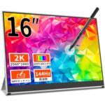 Cuviewの16インチタッチ対応2Kポータブルモニター。144Hz、2560*1600解像度、HDR、1ms応答、100% P3カバー、IPSパネルであらゆるデバイスに対応。非光沢仕上げで快適な視聴体験を提供。