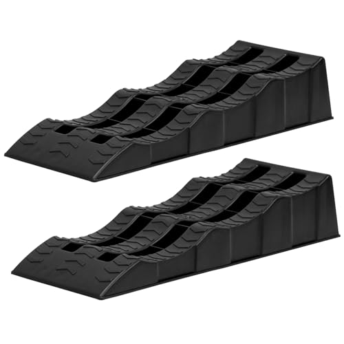 ottostyle.jpのカースロープは、耐荷重3.5tで幅61cm、奥行き21cm、高さ12cmの調節可能な3段階設計。オイル交換や整備に最適で、軽自動車からSUVまで対応。2個セット販売。