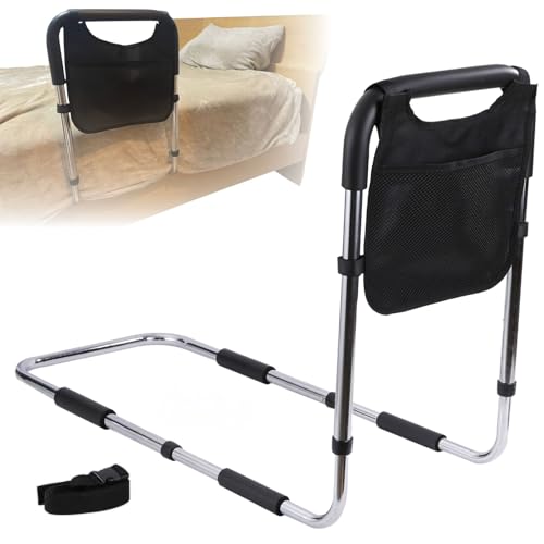 健康雑誌『安心』掲載!作業療法士監修のベッドガード。軽量で簡単に組み立て可能。5段階の高さ調節ができ、起き上がり補助や転倒防止に最適。日本語説明書付き(ブラック)。