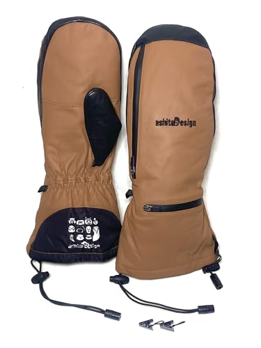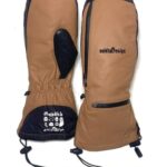 スキースノーボードに最適なレザーミトングローブ。手が出せるタイプで、茶色のデザインが特徴。Lサイズで、暖かさと動きやすさを兼ね備えたアイテムです。