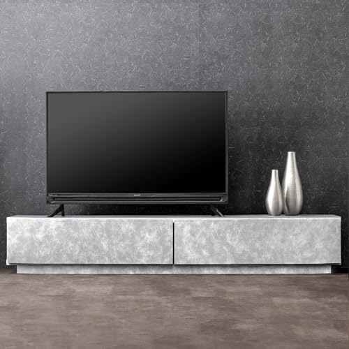 タンスのゲン製テレビ台、幅150cmの完成品です。モルタル調のモダンデザインで、スローダウンステー機能付き。大川家具製で安定感抜群のローボード。