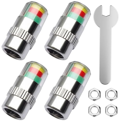 空気圧センサー 車 エアバルブキャップ タイヤバルブ タイヤ空気圧モニタリング ボンネットセンサー4個セット 自動車用ユニバーサルパーツ 気圧モニタリング タイヤ空気圧測定 3色ディスプレイ 説明 ステータスの把握(小型スパナ工具付き) (鋼鉄)の製品情報