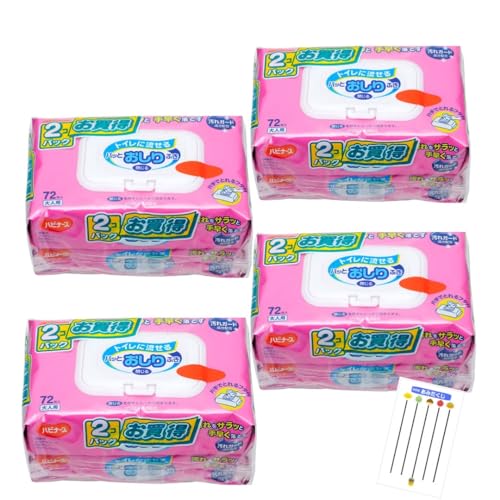 ハビナースのトイレに流せるおしりふき72枚入り×2個パック。フタ付きでやわらか厚手、汚れガード成分配合。介護や高齢者向け。サイズは180×190mm。日本製。さらに、咲耶姫STOREオリジナルくじ(4袋セット)付き。