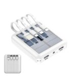ソーラー充電器 モバイルバッテリー 4本ケーブル内蔵型 大容量 10000mAh 携帯電話 スマホ 充電器 ソーラーパネル チャージャー 小型軽量 iPhone対応 15 pro max plus Type-C出力 android GALAXY Xperia タイプC 2.1A急速充電 アイフォン対応 地震 台風 防災 災害用 (ホワイト)の高価買取