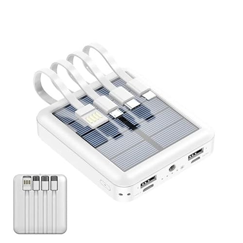 ソーラー充電器 モバイルバッテリー 4本ケーブル内蔵型 大容量 10000mAh 携帯電話 スマホ 充電器 ソーラーパネル チャージャー 小型軽量 iPhone対応 15 pro max plus Type-C出力 android GALAXY Xperia タイプC 2.1A急速充電 アイフォン対応 地震 台風 防災 災害用 (ホワイト)