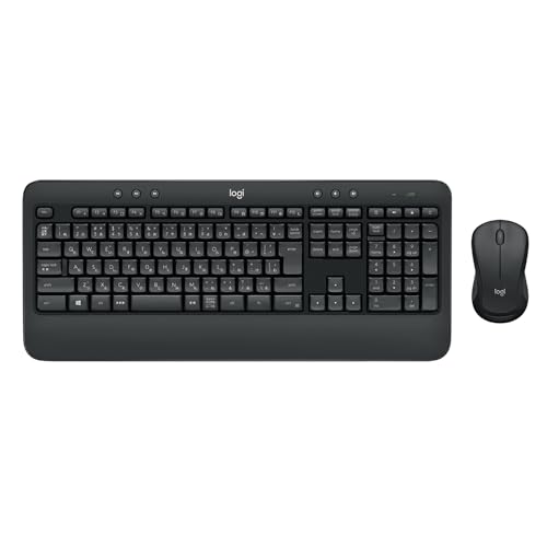 ロジクール MK540はワイヤレスマウスとキーボードのセット。パームレスト、チルトレッグ付きで耐水性、耐久性も優れる。Unifying USB接続対応、WindowsとChromeで使用可能。グラファイトデザイン。