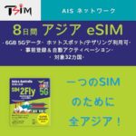 TSIMのアジア&オーストラリア用eSIMカード。6GBデータ、8日間利用可能。5G対応、自動アクティベーション。対応国:オーストラリア、バリ、カンボジア、中国、香港、インドネシア、日本、マレーシア、シンガポール、韓国、台湾、ベトナム。
