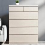 タンスのゲンのチェストは、幅75cm、薄型の奥行30cmで、日本製の大川家具です。5段の収納スペースを持ち、リビングやサイドチェストとして最適。