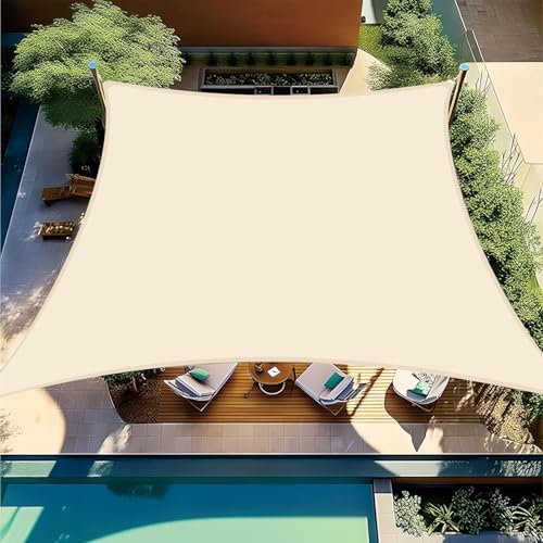 BIGLOONG日除けシェードは、紫外線UVカットと遮熱機能を備え、屋外での省エネに最適。サイズ3*3M、ミルク色。廊下、庭下、プール、カーポートなどに使える。テントクリップ付きで便利。