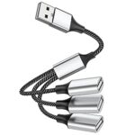 TRkin USB C分岐器は、Type-CからダブルUSBポートへ変換し、高速データ転送をサポート。プラグアンドプレイで、カードリーダーやキーボード、プリンタなど多様なデバイスに対応(シルバー)。
