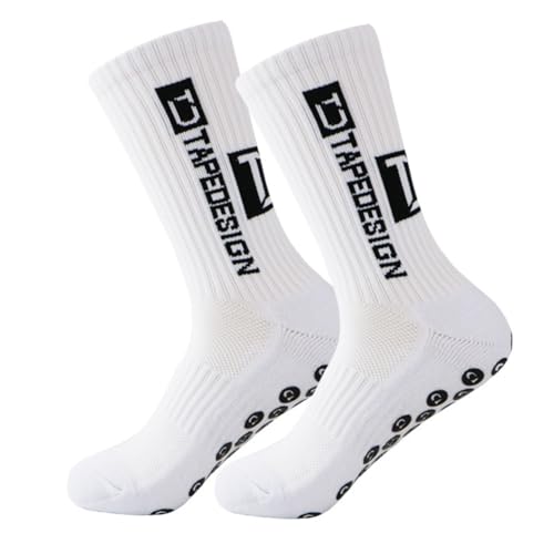 サッカーソックス メンズ スポーツソックスで、綿素材の中厚手。ミッドチューブ設計で滑り止め粒子付き。バスケット、トレーニング、フットサルに最適。男女兼用、フリーサイズ、ホワイト。