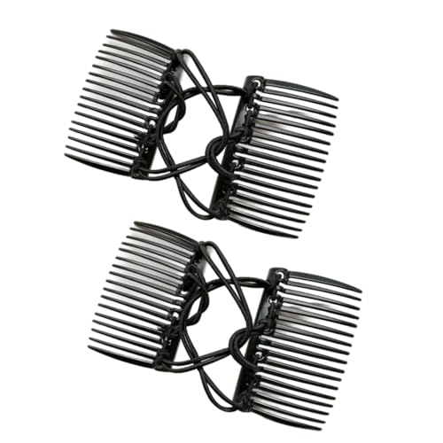 2個セットのブラック調節可能な伸縮性ヘアコーム。ダブルスライドヘアピンで、折り目なしで髪をまとめる。女性用のスタイリングアクセサリーです。