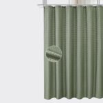 淇家惠シャワーカーテンは防水・防カビ仕様で、サイズは150*180cm。ユニットバスに最適な速乾性と加重デザイン。チェック柄で目隠し効果もあり、リング付きで取り付けも簡単。