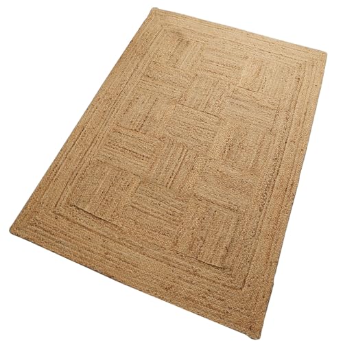 グラムスタイルのジュートラグは、手織りでサステナブルな素材を使用。シンプルモダンなデザインが特徴で、サイズは1.5畳(130x190cm)。ナチュラルなインテリアやリゾート感を演出するスクエア柄です。