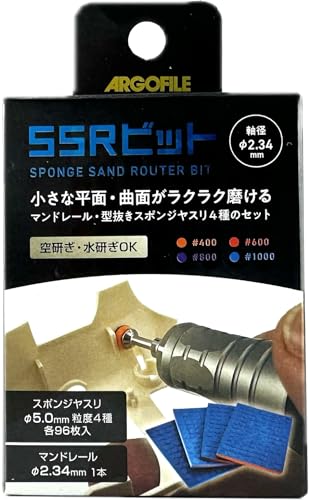 アルゴファイル SSRビットセットには、ビット1本と#400、#600、#800、#1000のスポンジサンドルータービットが含まれています。また、スポンジヤスリ各1シート(SSH0503)が付属します。
