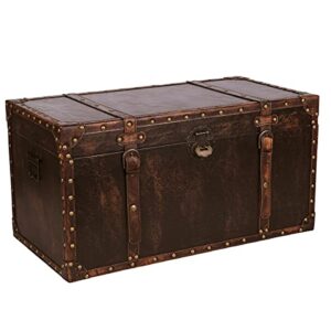 Aoakua 鍵付き 超特大 トランク型 収納ボックス 大型 木箱 トランクボックス アンティーク宝箱 (W70cm)