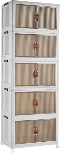 Rubvrenti収納ボックスは、折り畳み式で積み重ねが可能、キャスター付きの便利な収納ケースです。衣類や書類、おもちゃなどを収納できる大容量のプラスチック製で、防塵・防カビ・防湿機能があります。透明で丈夫な作り、5段式で組立簡単。サイズ:56cm*34cm*157cm。
