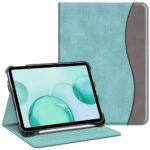 Fintie iPadケースは第11世代と第10世代対応。保護カバー、Apple Pencil収納、オートスリープ機能付き。2つ折スタンド、マルチ視角、ポケット付きで傷防止。PU合成レザー製(ターコイズ)。