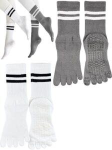 [Monlyu] ヨガソックス 5本指 滑り止め レディース ピラティスソックス ヨガ 靴下 抗菌防臭 ロング ピラティス スポーツ トレーニング グリップ ソックス すべりどめ ウェア 冷房対策 防寒対策 くつした くつ下 吸湿性 通気性 速乾 くすみカラー (JP, アルファベット, Free Size, A.ホワイト/チャコールグレー(2足セット))