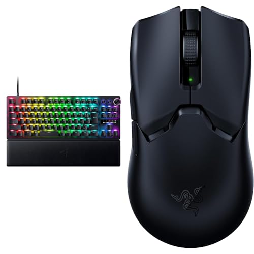 Razer Huntsman V3 Pro Tenkeylessは迅速なキー反応を誇るゲーミングキーボード。リストレスト付きで快適。Viper V2 ProはFocus Pro 30Kセンサー搭載の高性能マウス。無線対応、30000DPI、6ボタン設計でゲーミングに最適。