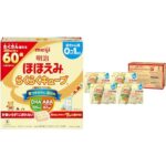 明治ほほえみのセットは、固形粉ミルク1,620g(27g×60袋)と常温で飲める液体ミルク200ml×24本で、0ヶ月から1歳頃の赤ちゃんに最適です。