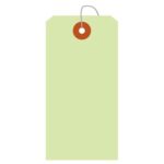 ササガワ タカ印 針金付きカラー荷札 大 黄緑 一穴 1000枚入(50枚帯×20束) 25-145は、用途に便利な針金付きで、整理や管理に最適な荷札です。色分けが容易で、目立つ黄緑色が特徴です。