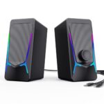 ROSONのコンピュータースピーカーは、低音とボリュームコントロールを強化したステレオ2.0スピーカー。USB電源と3.5mm AUX接続に対応し、ノートPC、デスクトップ、タブレット、電話との互換性があります。