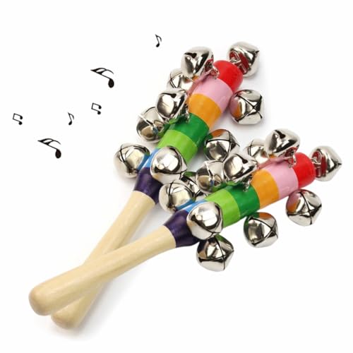 Getrays ハンドベル2個セット、木製の楽器。虹色デザインで、クリスマスやお遊戯に最適。赤ちゃんや子供向け、打楽器としても楽しめる音楽玩具。