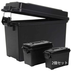PerldVerge ツールボックス 道具箱 ブラック アンモボックス 2個セット 収納 工具入れ 作業用 家庭用 キャンプ 防水 車載 蓋付き 樹脂製