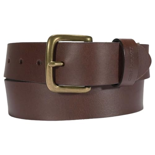 カーハートのブライドルレザー製ベルト。牛革を使用し、クラシックなバックルデザインでカジュアルなコーディネートに最適。男性用、34インチサイズ、ギフトにもおすすめの並行輸入品。