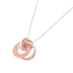 シューラルーのサークル樹脂メタルねじりネックレスは、ピンクゴールドの美しい色合いが特徴。独特のデザインで、どんなスタイルにもマッチし、華やかな印象を与えます。