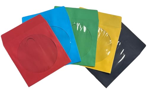 MediaPack4Allのマルチカラーペーパースリーブ100枚セットは、フラップ付き封筒でクリアウィンドウデザイン。CD/DVDの収納に最適。カラーはレッド、グリーン、スカイブルー、イエロー、ブラックの5色。