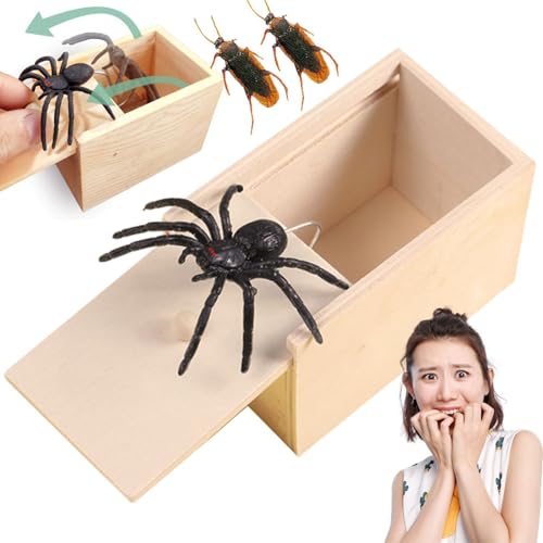 ドッキリ仕掛けの木製ボックス。中から驚くべき蜘蛛やゴキブリが飛び出します。ハロウィーンやエイプリルフールのジョークにぴったり!ギフトやパーティーでのサプライズに最適。